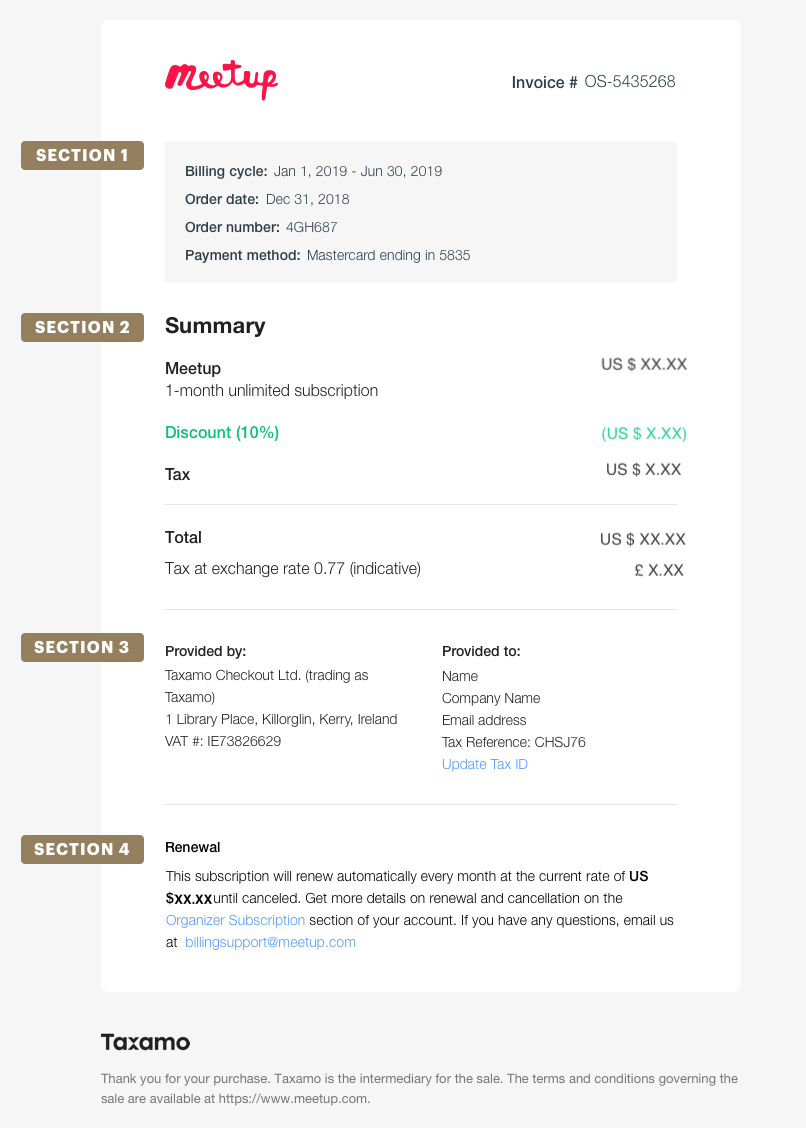 - Your email address, tax ID number, and Meetup's tax exemption form